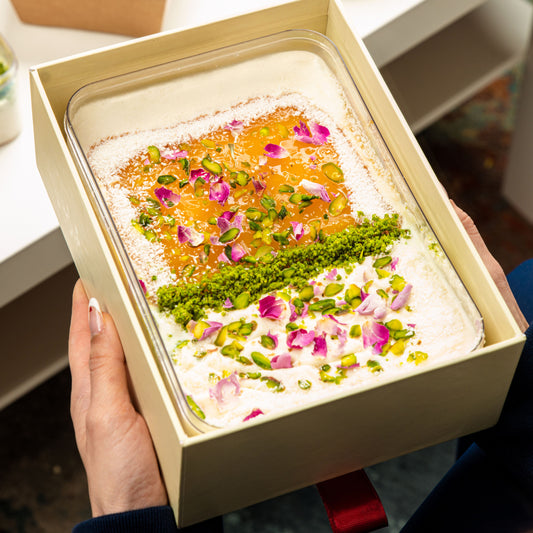 بلوندي فستق دافئ مع آيس كريم المستكة