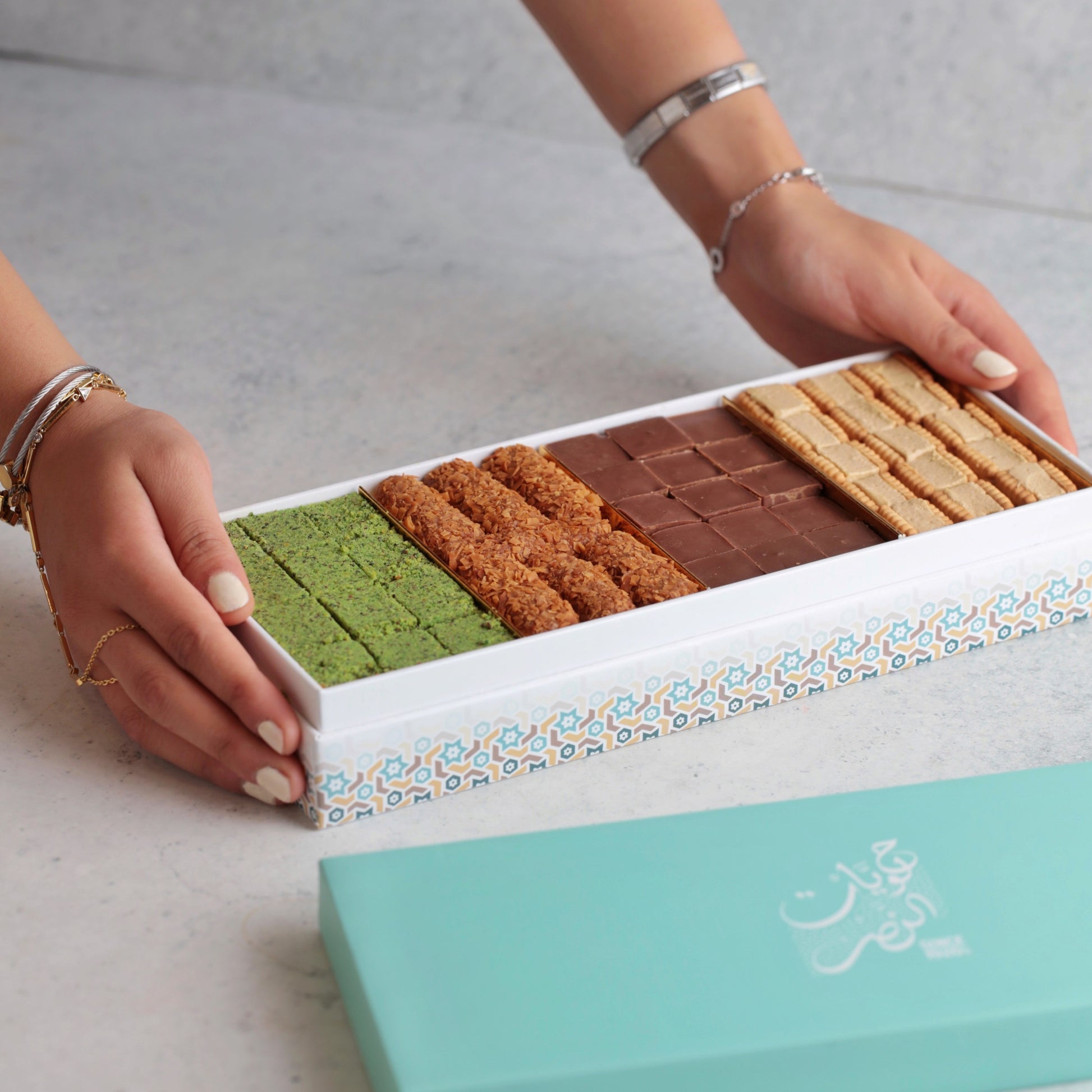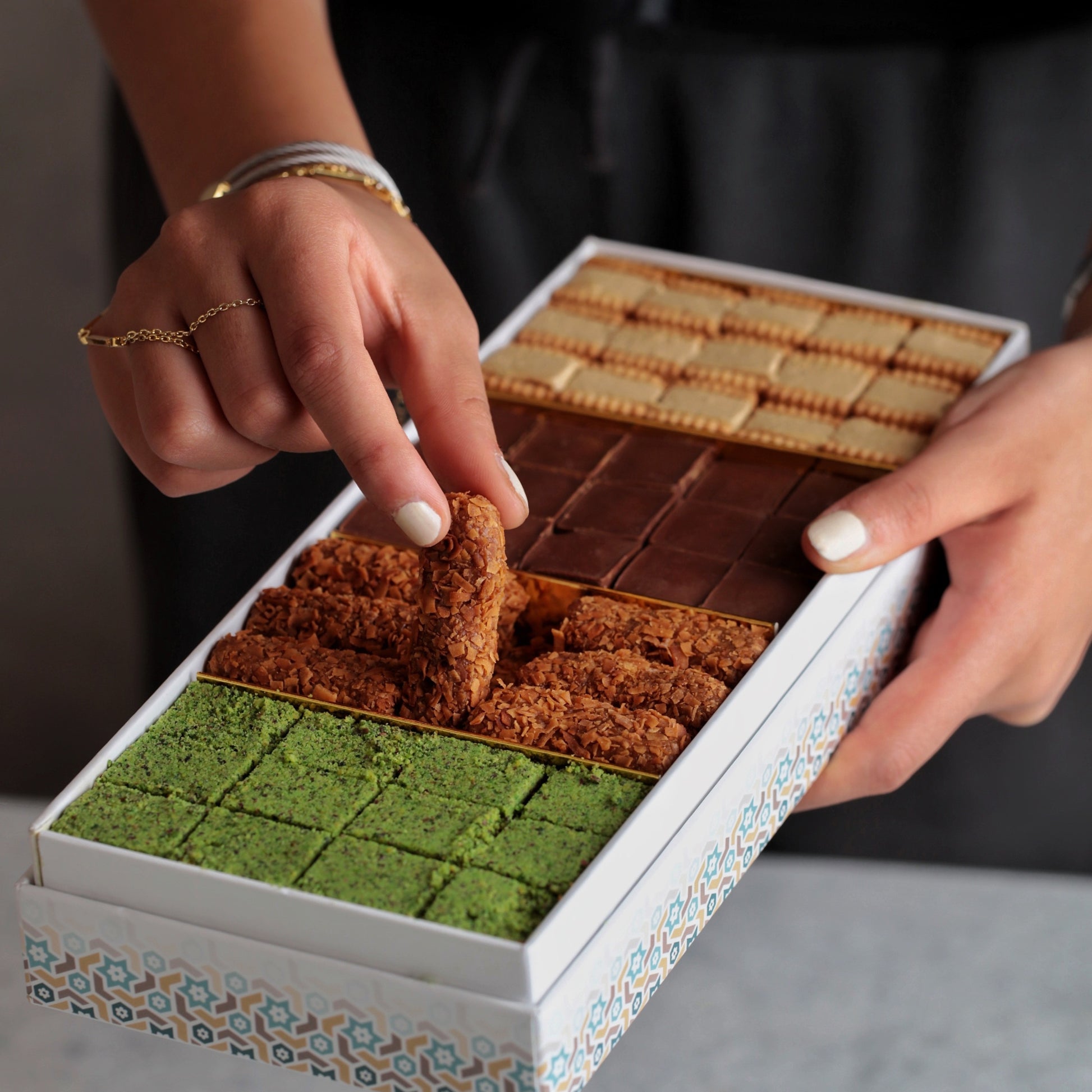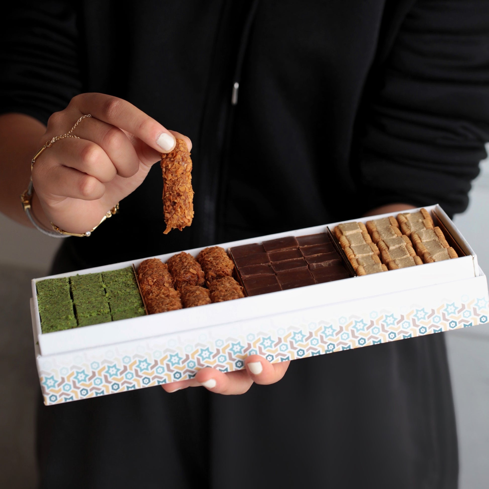Mini Biscuit with Rahash, Ranjena, Dark Chocolate with Caramel, Caramel Fingers with Coconut